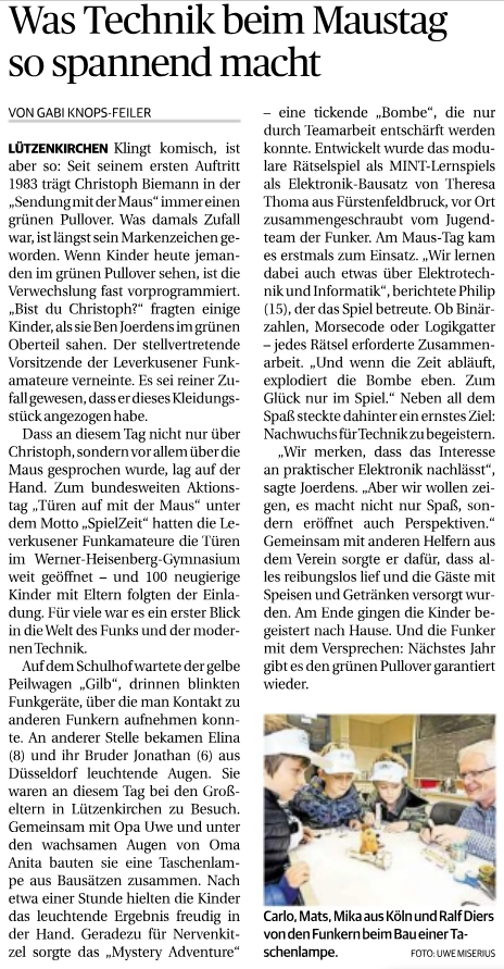 zu Gast im OV G11, im Werner-Heisenberg-Gymnasium in Leverkusen. Gemeinsam mit dem Gymnasium konnten wir einen spannende "Maustag" anbieten.